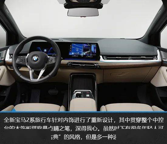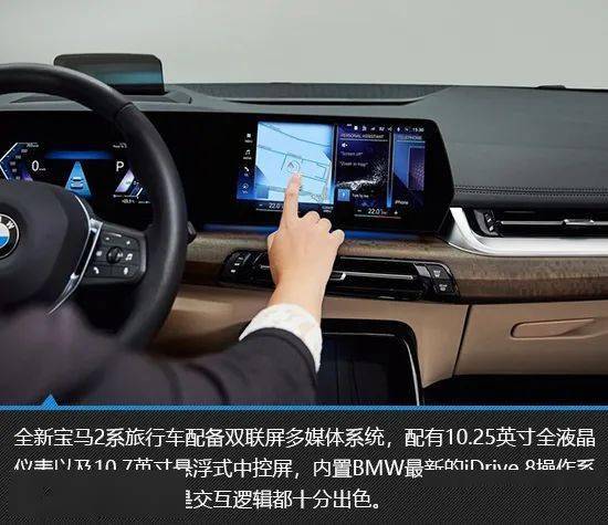 全新宝马2系旅行车内饰颇具时尚气息,而且木饰板的加入也带来了非常不一样的感觉,很有新意。配置方面,10.25英寸全液晶仪表以及10.7英寸悬浮式触控屏算是“常规操作”,搭配最新的iDrive 8操作系统,营造出极强的科技感。此外,新车还可以选择全景玻璃车顶以及哈曼卡顿音响等配置,这些对于年轻人而言无疑很有吸引力。