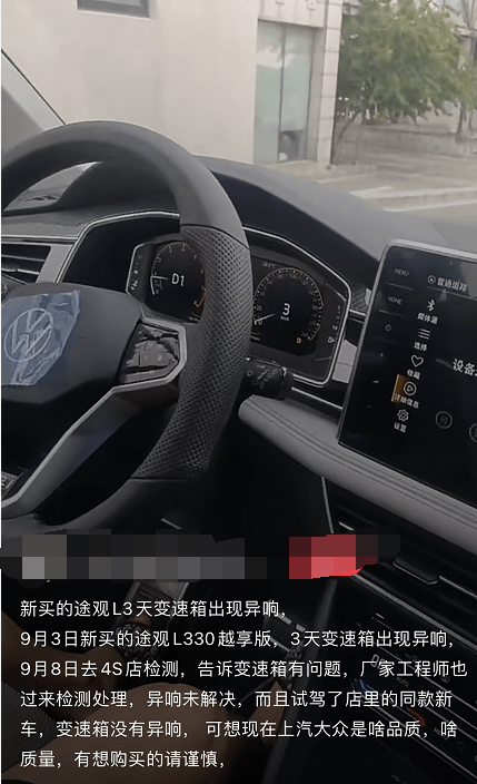 2023年9月3日买了一辆途观L,提车第三天,车辆出现变速箱异响。