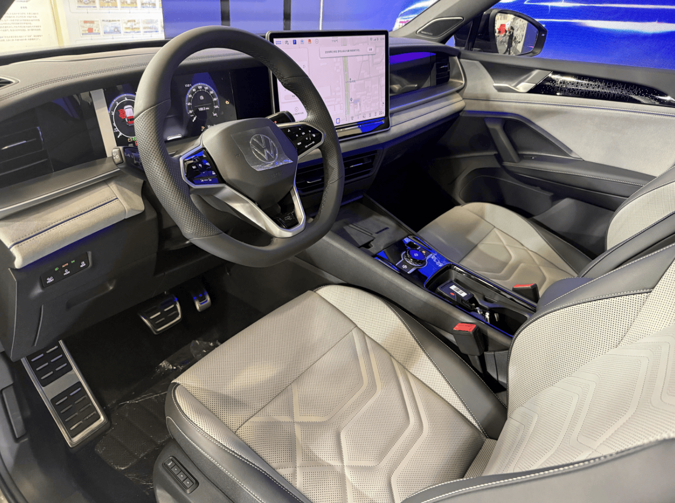 内饰也是途观L Pro的那一套设计语言,由10.25英寸全液晶仪表盘、15英寸2K悬浮式中控屏和11.6英寸副驾娱乐屏组成的三大屏座舱,营造出满满的科技氛围,再结合光轮智控旋钮以及HUD抬头显示,又带来沉浸式的交互体验。而诸如旋转式电子怀挡、手机无线充电、云感座椅通风/加热、氛围灯、哈曼卡顿音响、全景天窗等配置均没有缺席。同时也将搭载与大疆车载联合开发的IQ. Pilot智能辅助驾驶系统,可实现pACC预见性自适应巡航、智能加塞应对、智能避障等功能。