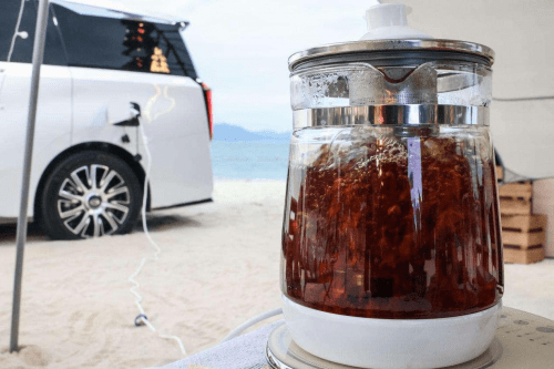针对时下流行的露营场景,传祺E9亮出快充、慢充、对外放电功能,实现对外放电最大14度,功率3.3kW,可以覆盖户外烹饪、户外派对、户外电影院等娱乐休闲生活、以及车对车充电、电脑手机等电器充电需求。