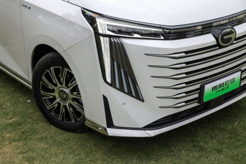 传祺E9整体设计继承自M8宗师版,最大变化在于前脸造型,横向镀铬饰条主导的无边界式格栅展现强烈的视觉辨识度。全新调整的大灯内部结构以及贯穿式灯带,还是很有辨识度的,而且这个前脸设计更接近一款新能源车。
