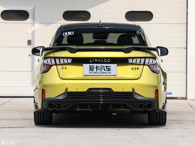 领克03+的尾部造型同样吸睛,“LYNK & CO”标识镶嵌在能量晶体尾灯之间,无论点亮与否都拥有极强的辨识度。而大尺寸的尾翼、车底扩散器以及双边共四出的排气布局进一步增强了运动感。在如此多配件的加持下,领克03+将拥有更低的风阻系数,并且最大车速下压力从11kg提升到40kg,大幅提升了操控稳定和性能表现。