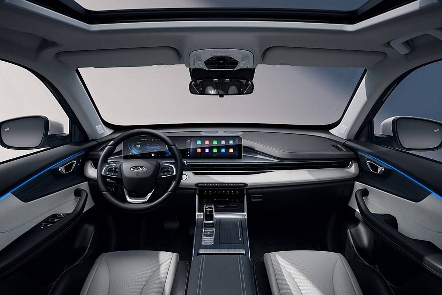 新款奇瑞Tiggo 4的内饰采用简洁的设计风格,配备了双联屏(液晶仪表和中控屏都是10.25英寸)和双拼色内饰。