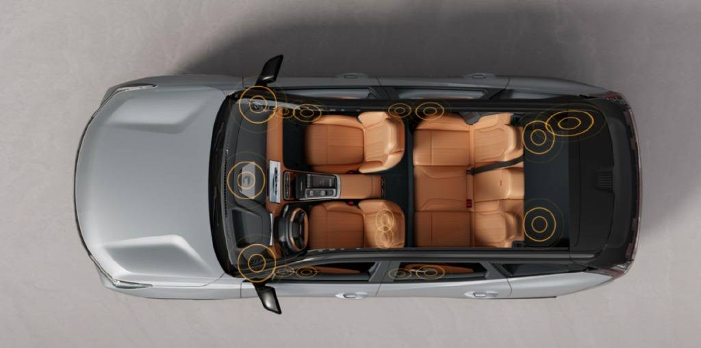 舒适性方面,第四代博越L全系标配可开启全景天窗(含电动遮阳帘)。同时,座椅加热、通风、按摩、头枕扬声器(仅驾驶位)、女王副驾等主流配置一应俱全,同时还有功率达1000W的16扬声器的Flyme Sound音响,以及支持音乐律动、呼吸渐变等8种交互模式的256色氛围灯。
