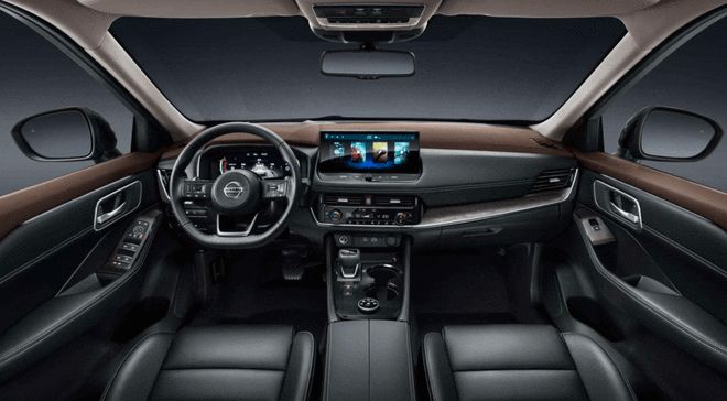 内饰较现款有了非常大的变化,中控台设计层次分明,大量运用皮革、银色镀铬、钢琴烤漆等材质装饰,有效提升了车内质感。配备平底式真皮多功能方向盘、12.3英寸全液晶仪表盘、12.3英寸悬浮式中控屏和10.8英寸双层曲面技术HUD抬头显示,可以实现三屏联动,科技感十足。中控屏搭载全新升级的Nissan Connect超智联2.0,覆盖语音控制、远程控制、车家互联、车载KTV等多种使用场景,极大地方便了用户的行车生活。