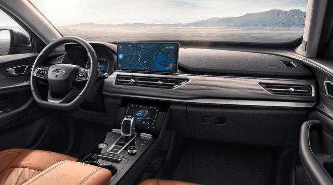 内饰方面,瑞虎8鲲鹏版整体造型和布局和现款车型基本一致,但科技感方面会有所提升,悬浮式中控屏从10.25英寸升级为更大的12.3英寸,并配备7英寸全液晶仪表和8英寸空调座椅触控板,整车科技感更上一层楼,并内置了雄狮智云3.0版本,拥有AI人脸识别、AI云管家、AI智云互联远程车辆控制和增强型自然语音交互功能。另外,新车还配备手机无线充电、真皮座椅、前排座椅加热、双区自动空调、ACC自适应巡航、智能远近光灯和车道偏离预警等舒适性、科技性配置。