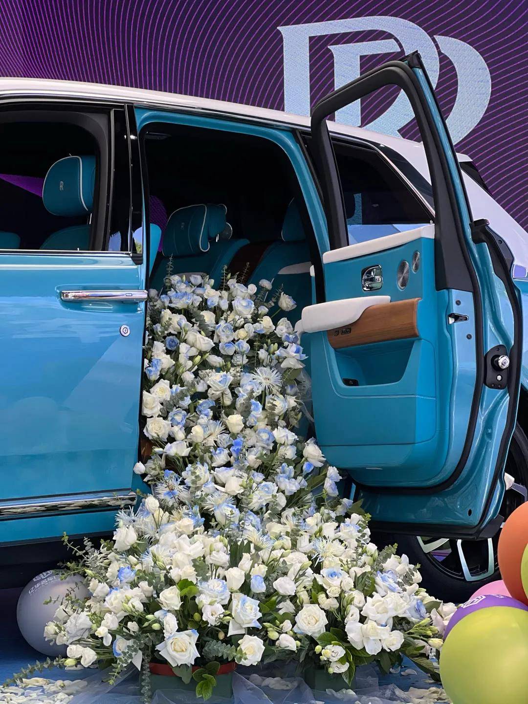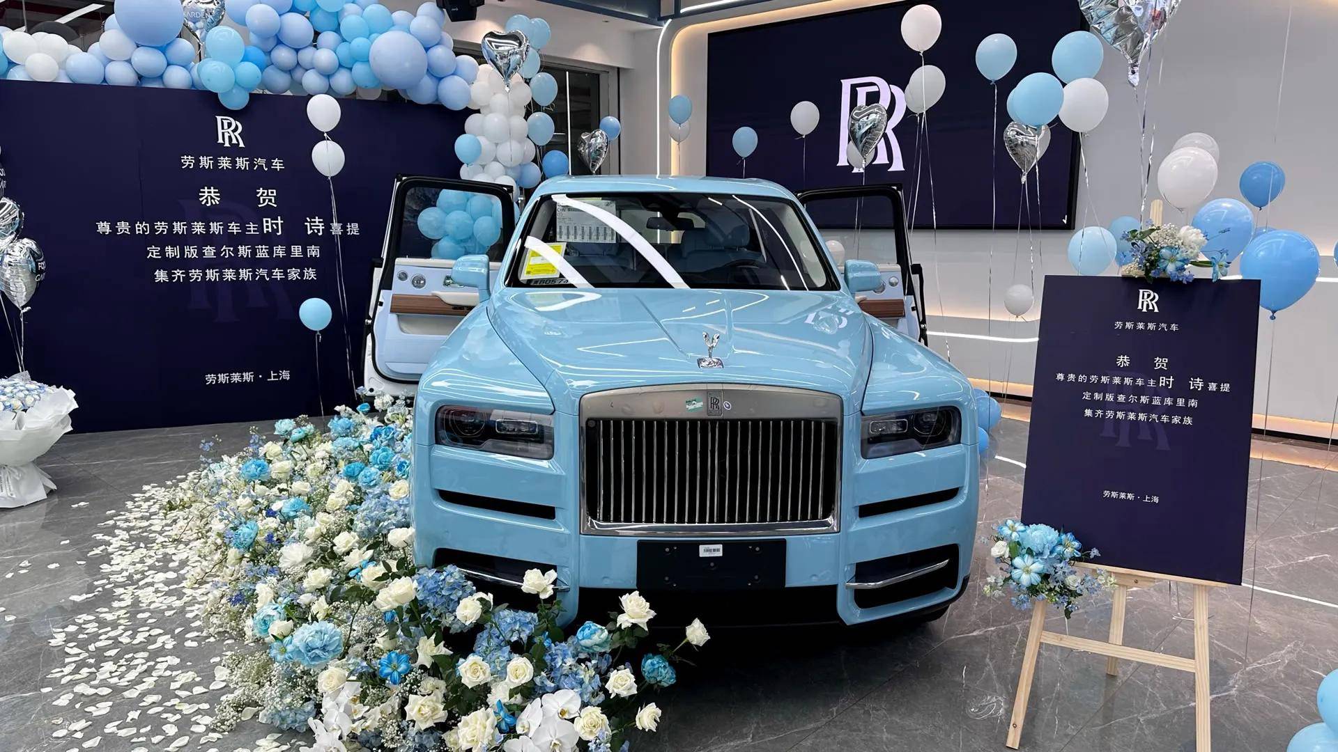 网红二驴6月13号花费900多万给老婆平荣提蓝白配色劳斯莱斯库里南,不到10天再次给自己提高配定制版劳斯莱斯•库里南。