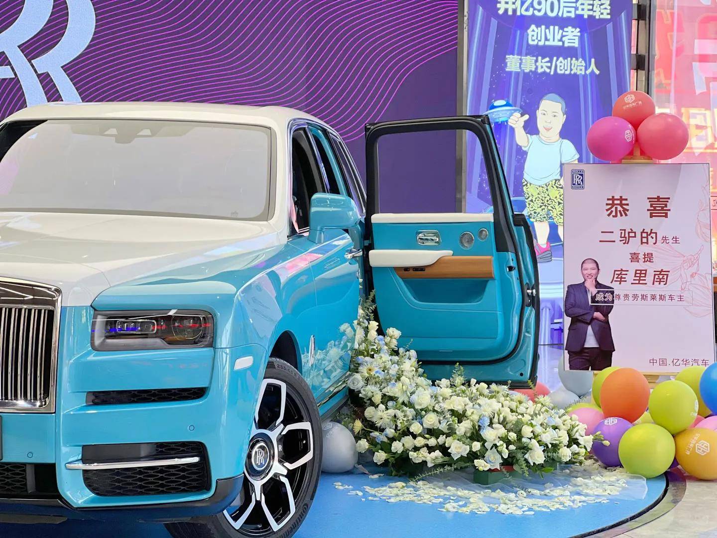 二驴已经买过四台劳斯莱斯了。第一台,库里南,刚刚出来的时候等了一年;第二台劳斯莱斯幻影;第三台,劳斯莱斯库里南,瓷器兰的;第四台,是四座流星顶的劳斯莱斯库里南真是漂亮!卖车的亿华说,这些年二驴在他那里购车已经花了一亿,是他那里的大客户。