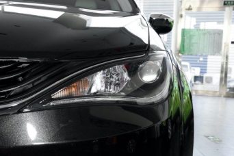 它前格栅律动水波纹的样式的黑色装饰条和银色镀铬装饰条