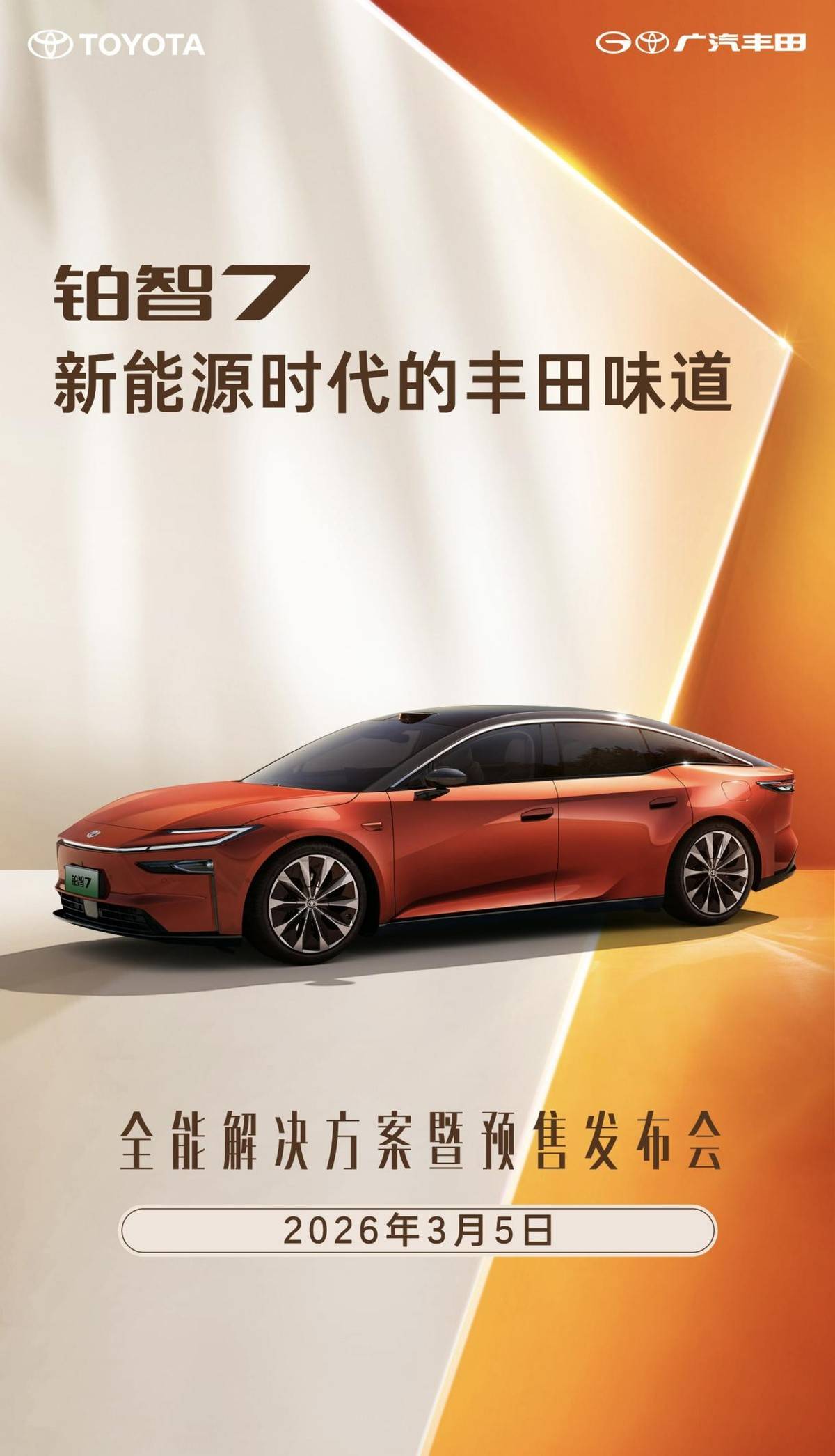 广汽丰田铂智7,将于3月5日预售,中高端稳了吗?