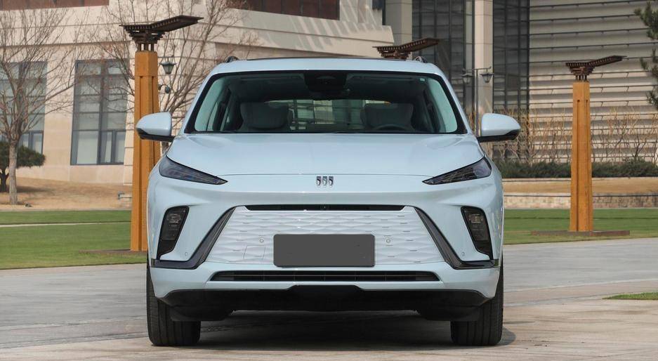 在设计层面,别克E5的造型第一眼不会让人联想到它和凯迪拉克LYRIQ的联系,整车造型有70%保留了概念车原型才有的设计元素,比如梯形下格栅、黑色导风槽装饰、分体式头灯组等。和概念车外观相比,E5的车身轮廓发生了改变,甚至用“剧变”来形容也未尝不可,其中A、D柱夹角增大,车身身高拔高,车侧腰线过渡显得比较突兀,整体看上去是魁梧剽悍,一定程度上贴合了年轻消费者对家用大五座SUV的外观审美需求。