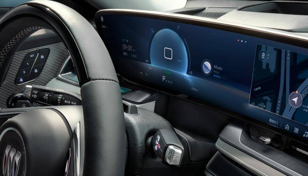 内饰中,为节省研发成本,实现平台多零件共通利用率的提高,别克E5也采用了和LYRIQ锐歌基本保持一致的内饰设计。最明显的设计便是驾驶区域仪表台上放置的30英寸一体式6K贯穿液晶屏,屏幕分辨率达到6008x934,且支持高精度多点触控,并加入防眩目低反射表面处理和防指纹设计。