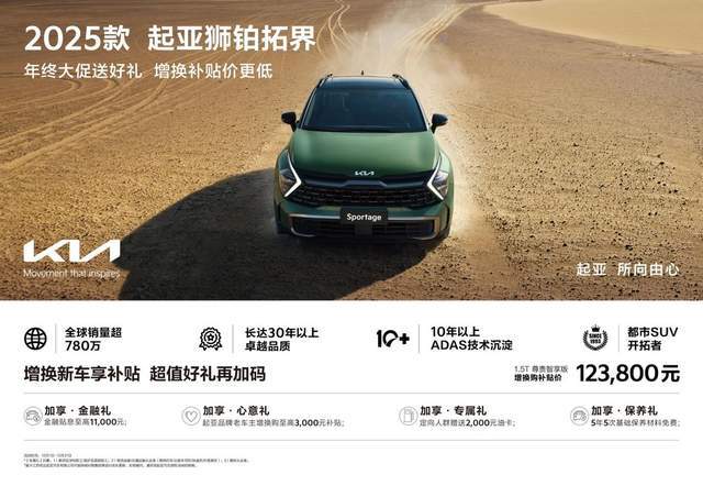 与此同时,消费者购买起亚新K3同样可享“年末大促价+增换购补贴价”组合权益,以及金融贴息、2,000元油卡、5年5次基础保养材料免费等权益。而2025款起亚K5、智跑则在上述购车权益基础上,分别增加4,000元和2,000元的起亚品牌老车主增换购补贴权益。