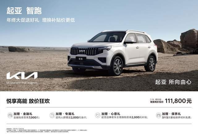 年终大促送好礼,悦达起亚12月增换购补贴价低至64,800元起
