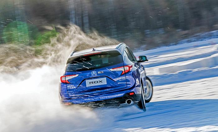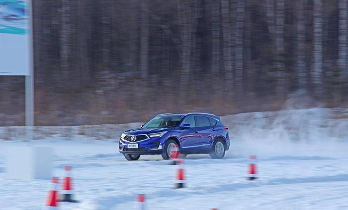好吧,逆来顺受,我就来说说在这种状态下,配备SH-AWD四驱的RDX表现。直线全力起步时,雪地模式会让变速箱以2挡起步,同时4个车轮同时出力,起步并不会有明显的打滑现象,与我们在正常铺装路面上起步基本是一致的。在弯道中,在合理减速入弯道后,我一般习惯丢开油门在弯中滑行,可你会发现冰上以这种方式过弯,前轮因为用的并不是钉胎,抓地力要比你下意识中差很多,推头或者失去转向等状况很难去避免。为了让SH-AWD帮助我们把车头对准弯心,过弯时应适当地多给些油门,此时能明显感觉到电脑会聪明地把动力尽可能地传到后轮,让车尾小幅度地滑动起来,抑制转向不足,从而出弯。与一般的、以前驱为主的适时四驱系统相比,SH-AWD能在稳定车身姿态同时提供一定的驾驶乐趣,这是比较难能可贵的。