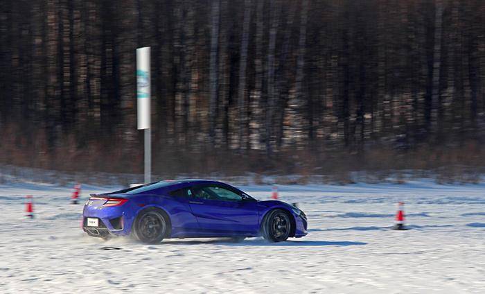 后来遇到完全结冰的铺装路面,我认为对车辆是更艰巨的考验,因为当我下车走上去的时候发现,我的鞋底可是一点“抓地力”都没有,而且这种结了冰的铺装路面比刚才的非铺装路面要平坦得多,理论上会更易打滑。可实际开起来,仍旧是“如履干地”,过程淡然无奇,我试探式地深踩油门,车身也没有什么滑动、摇摆,相信SH-AWD的电脑正实时地工作着,尽力阻止我“愚蠢”的行为。我只能说,开这车真有安全感.....