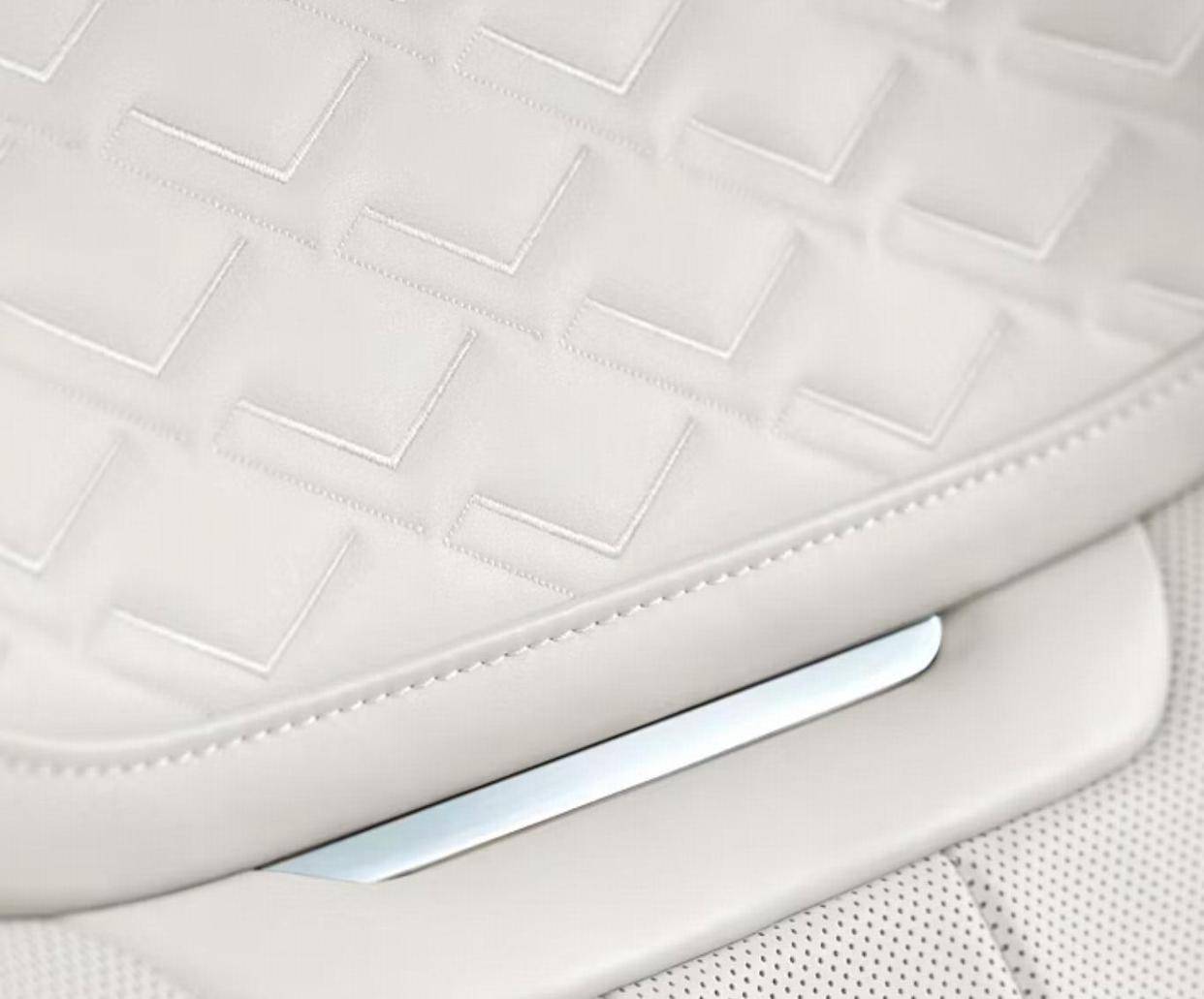 四座版的后排配置细节值得单独说明。 两个独立座椅都支持多向电动调节,配备加热、通风和按摩功能。 中央扶手集成有冷藏功能的香槟柜和电动升降桌板。 这些配置明显是针对商务用途设计的。