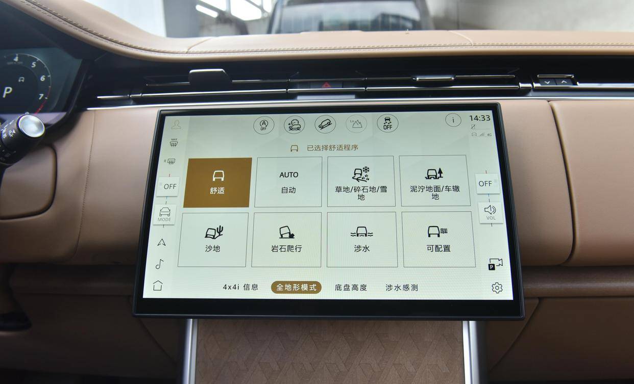 第二代智能全地形反馈适应系统是揽胜SV的招牌技术。 这套系统可以自动识别当前路况,并调整车辆设置以优化通过性。 在实际越野测试中,有媒体记录到这套系统可以在0.5秒内完成从铺装路面到沙地模式的切换。