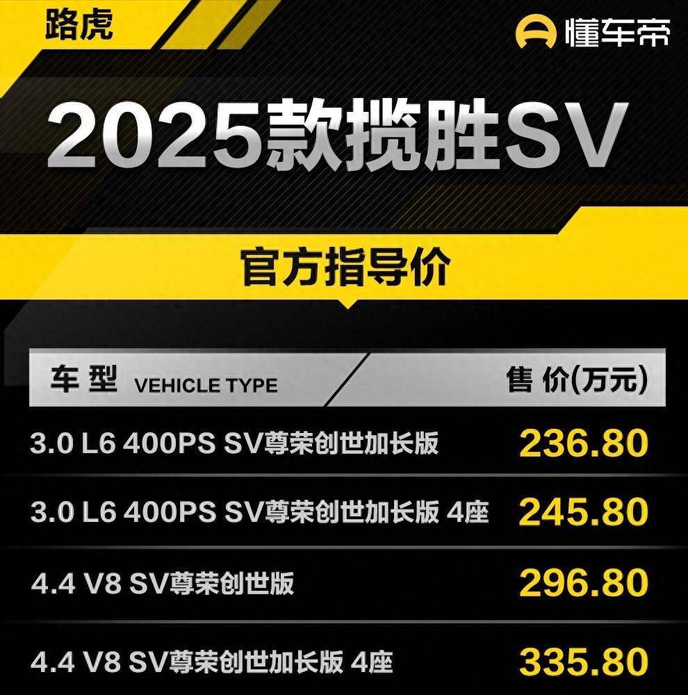 售价236.8万元起,2025款路虎揽胜SV上市,搭3.0T4.4T动力