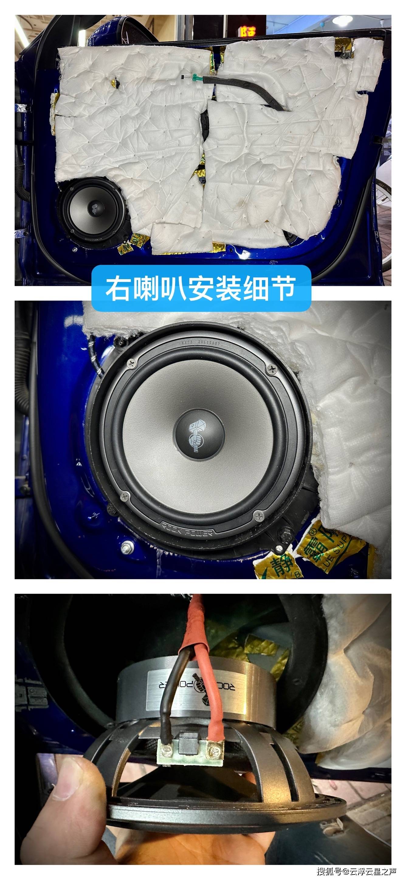 在喇叭更换方面,我们也是根据车主的听音风格与喜好,选择了一套洛克力量R670两分频喇叭替换前声场喇叭,其对音乐人声方面的表现很好,声音清澈无比,高音清晰,中低音圆润,播放出来的音乐效果让车主很是满意。