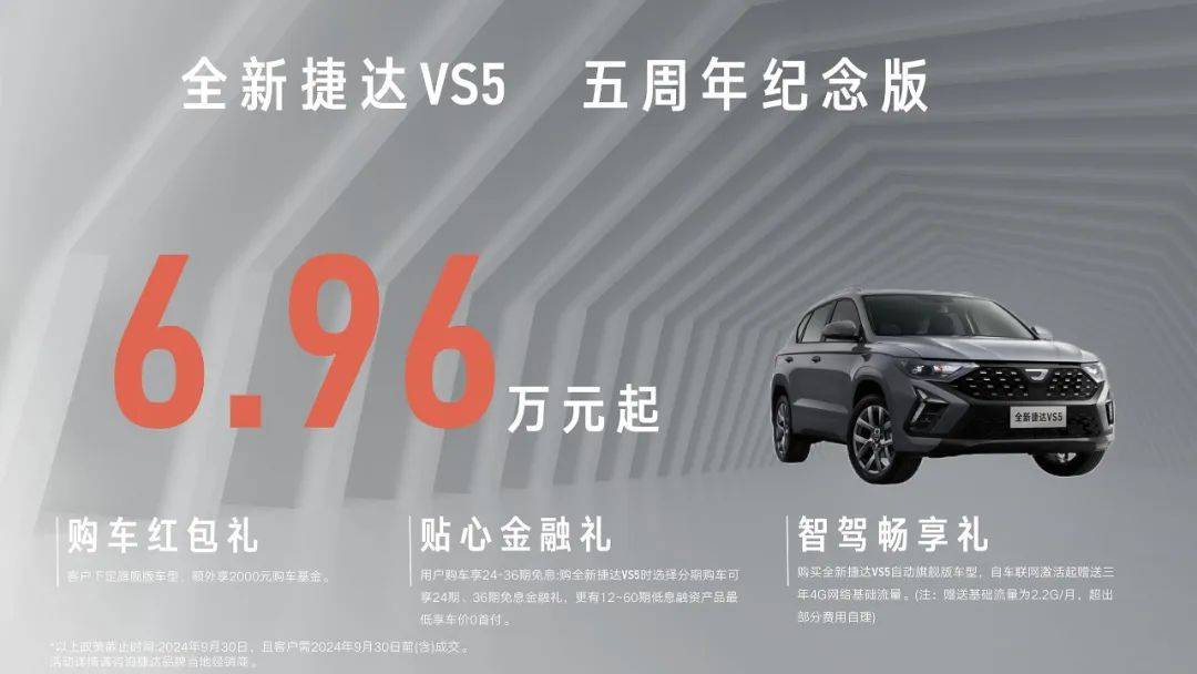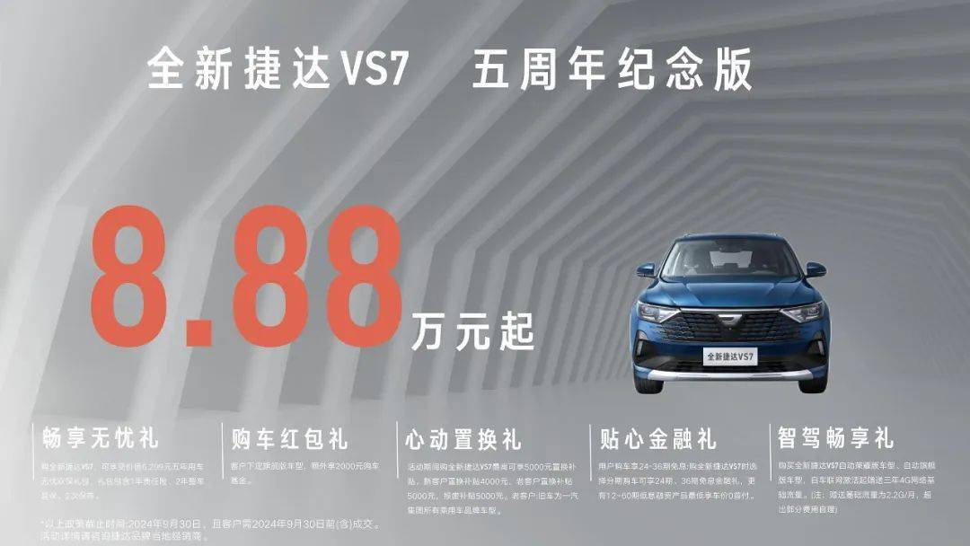 同时,推出全新捷达VS5五周年纪念版,起售价6.96万元;全新捷达VS7五周年纪念版,起售价8.88万元。