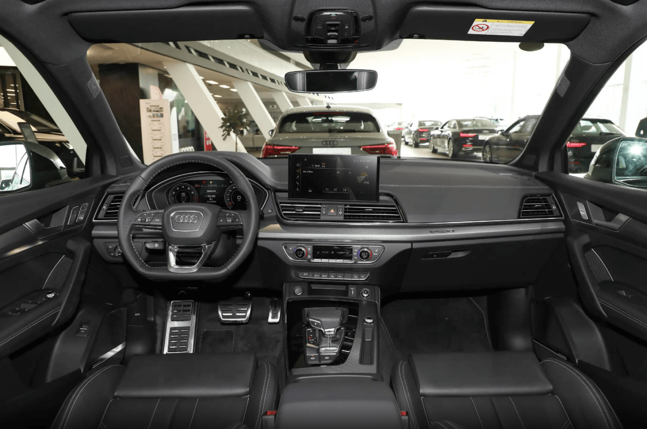 奥迪Q5L则保持了德系规整的工业风设计,车内采用T型的座舱布局,并在不同区域均覆盖软性材料,边缘装饰镀铬和木纹饰条,提升了车内的精致感。中控屏为直立悬浮设计,并搭配液晶数字仪表,中控采用MMI智联系统,在功能上以模块化布局为主,带有GPS、多媒体和CarPlay,在智驾上奥迪Q5L表现弱于凯迪拉克XT6,仅有L0级水平。