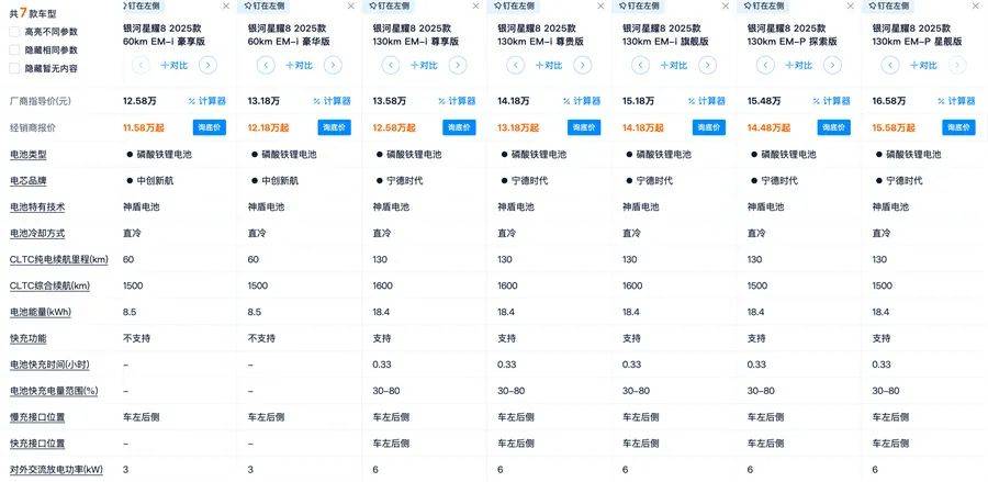 同价位下(如14万级),星耀8可选中高配车型(130km纯电续航+L2级智驾),而汉DM-i仅能选入门版(125km纯电续航+基础辅助)。叠加赠送的2.16万元配置,星耀8实际性价比优势扩大至3万-4万元。