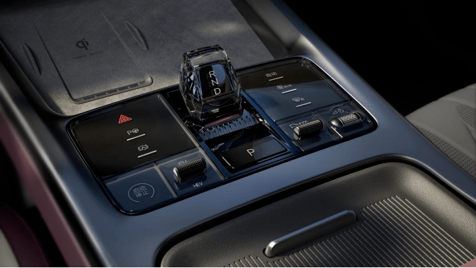 海豹DM-i的中控面板延续了海洋系列车型的整体布局,“海洋之心”集成了包括启动、动力模式、驾驶模式选择、空调与音响控制等常用功能,用起来足够顺手。