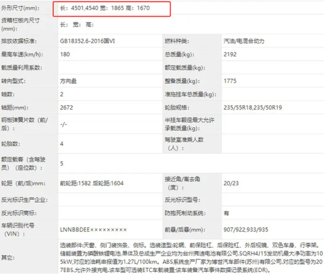 具体的配置方面,新车还并未公布太多信息,申报信息上显示,新车的电池部分为台州弗迪电池生产的磷酸铁锂电池,发动机部分为1.5T涡轮增压发动机,最大输出功率为115kW。这套发动机也是用在瑞虎7 Plus上的那台,整机热效率能够达到40%。