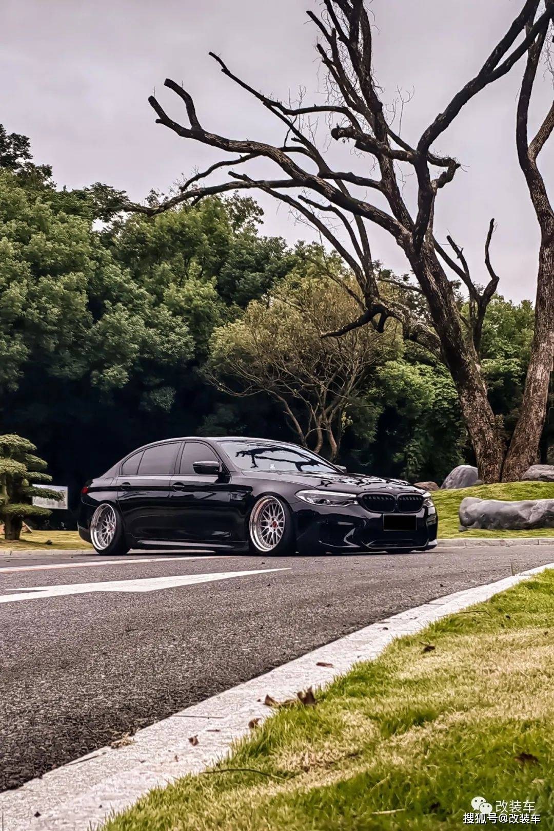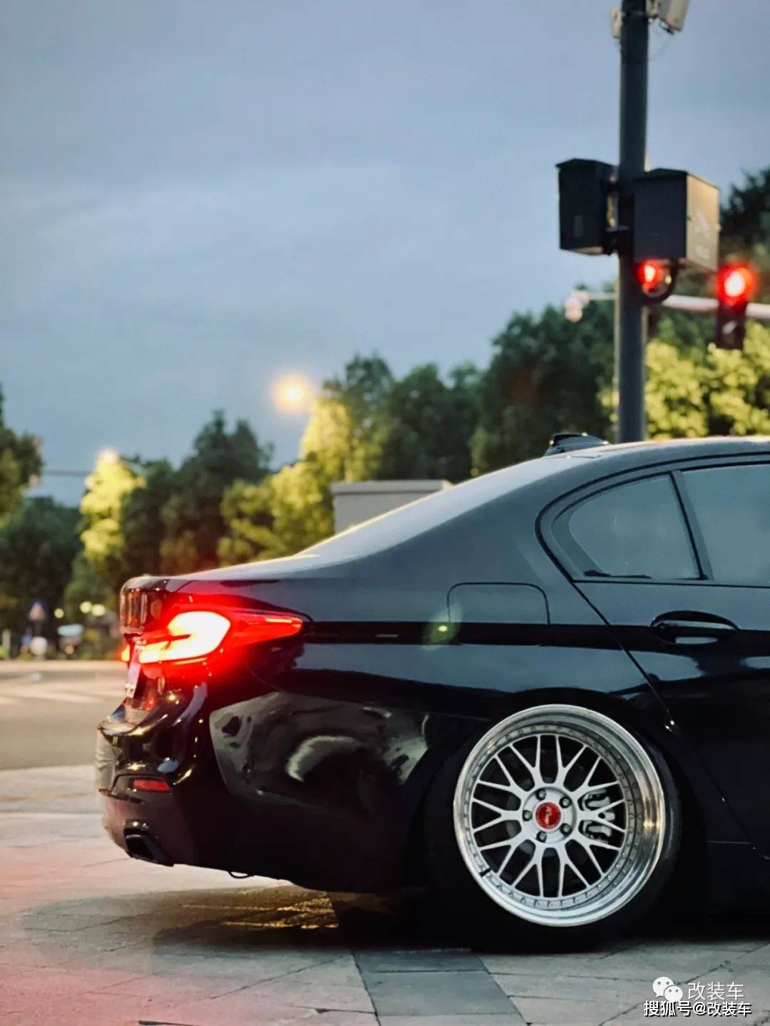 "换上了气动后,轮毂当然得重新选择一套数据和造型都合适的!经过一番考虑后,觉得5系跟BBS LM很搭,就选择了一套类似BBS LM的20寸国锻轮毂,上车后的效果我很满意,依旧觉得很帅。"