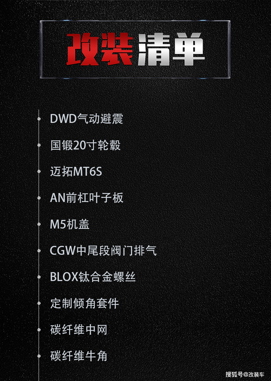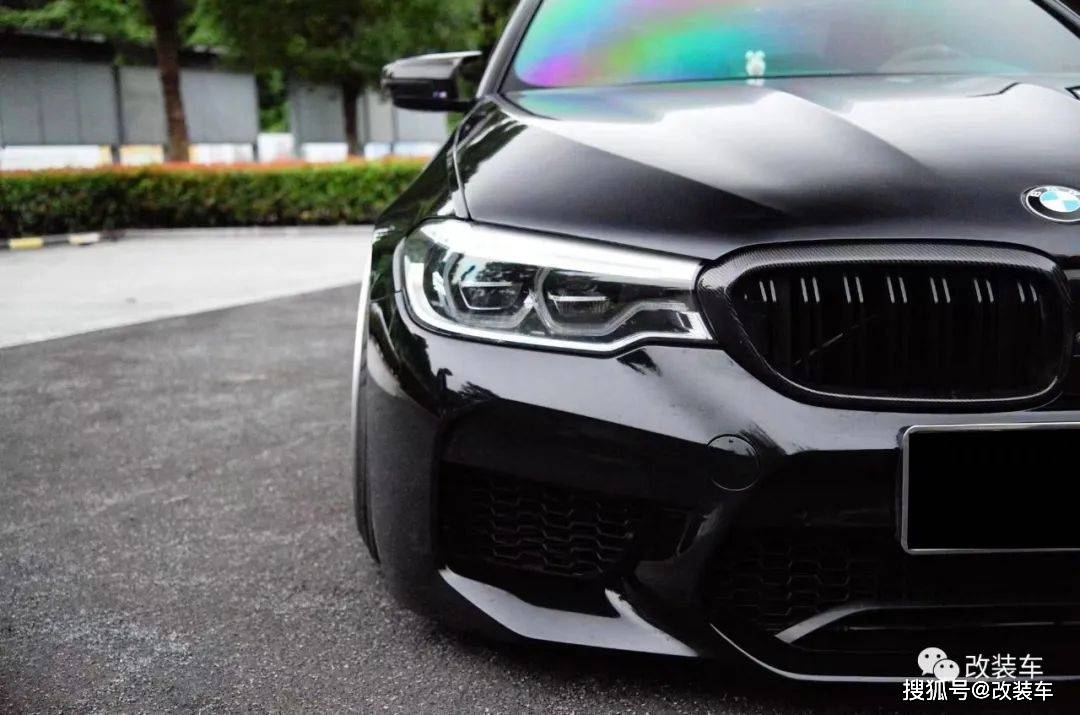 "然后是外观方面,换上了AN前杠、AN叶子板、M5机盖、碳纤维中网、碳纤维牛角后视镜壳,整体保持着一种干净、素雅的同时又有点战斗范的感觉。"
