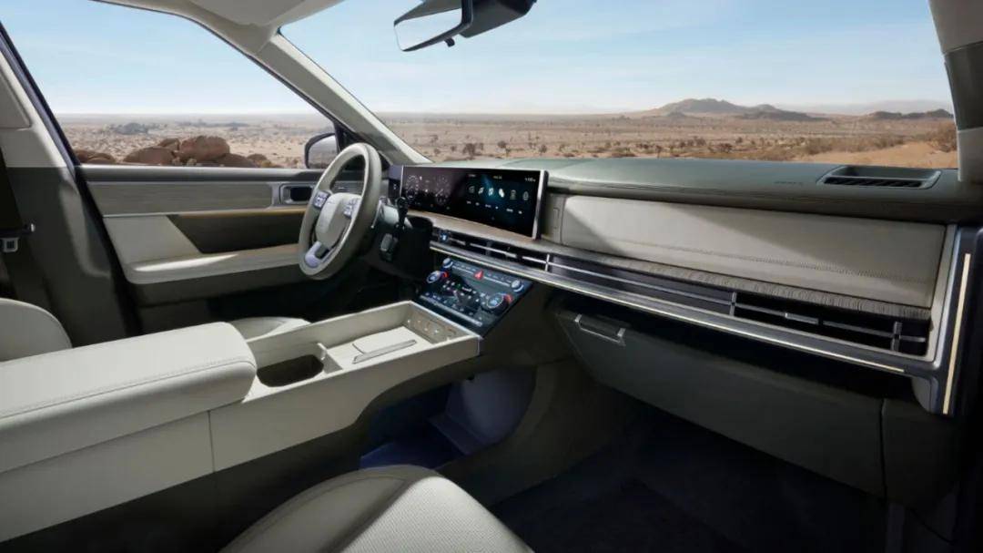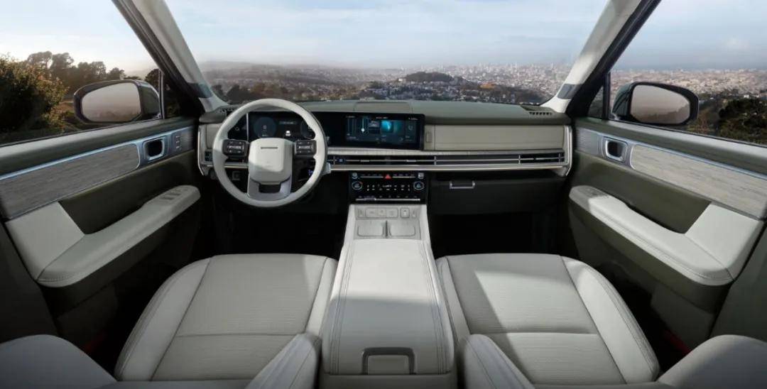 在设计上,第五代胜达采用现代汽车全球One Model方盒子设计,整体一看真的给人那种美式粗犷风。前脸部分H型大灯与贯穿式灯带相融合,搭配可双向开闭的AAF主动进气格栅、以及更大面积的下护板,塑造出了一种“复古范”的同时,也显得野性十足,还具有更强辨识度。