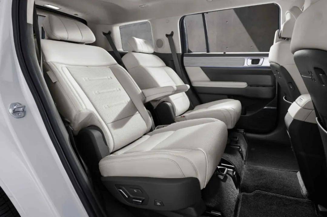 悬浮式的双12.3英寸曲面双联屏配合空调控制屏以及HUD抬头显示,将科技感拉满。左侧给驾驶员显示行车信息,右侧用来显示多媒体和车控信息。系统内置了微信、语音备忘录、爱趣听等多种应用,并且支持无线CarPlay和CarLife,二三排座椅的加热、移动和折叠功能也能从屏幕中操作。