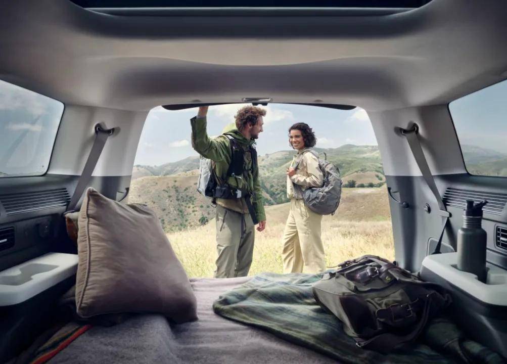 车内的15.4L超大中控储物盒可实现双向、三种开启方式;后备厢容积最高达到2046L,二、三排放平后进深最大可达2.05m,既可容纳3辆山地自行车、4个高尔夫球包、4个波士顿包,也可在户外成为移动的五星大床,和家人躺在车内,透过天窗欣赏夜空,十分惬意。