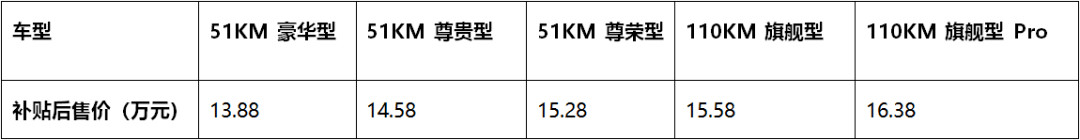 作为一款插混SUV,宋Pro DM-i定价已深入传统燃油SUV的腹地,带给普通家庭用户极具质(感)价比的用车体验,补贴后售价为13.88-16.38万元,NEDC纯电续航下有51km和110km两种续航共五款配置可选。而这五款车型中,笔者认为110km旗舰型Pro车型最值得购买,那它又有什么亮点呢?