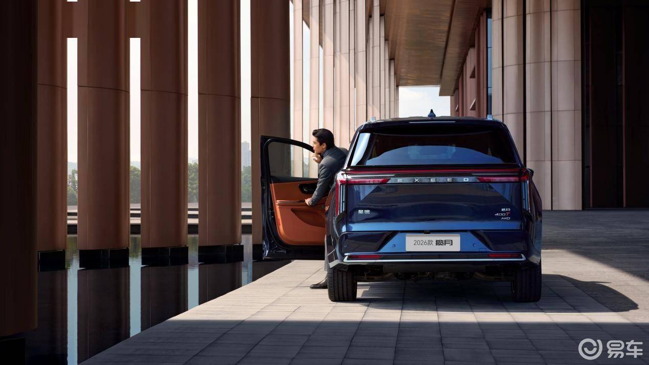 尊崇 Less is More的设计理念,2026款星途揽月前脸采用经典的超大横格栅设计,搭配大尺寸八边形中网,符合全球用户的主流审美,完美平衡力量与优雅,彰显出独特格调。尾部造型以更纯粹、简洁的视觉效果,进一步提升宏大气势与国际范,搭配超红光贯穿式LED尾灯,由418颗高亮LED灯精心打造,穿透力提升30%,提供更为清晰的安全视野。同时,新车匹配20英寸轮毂新造型,飞鱼版搭载马牌高性能轮胎,兼顾抓地力与静谧性。