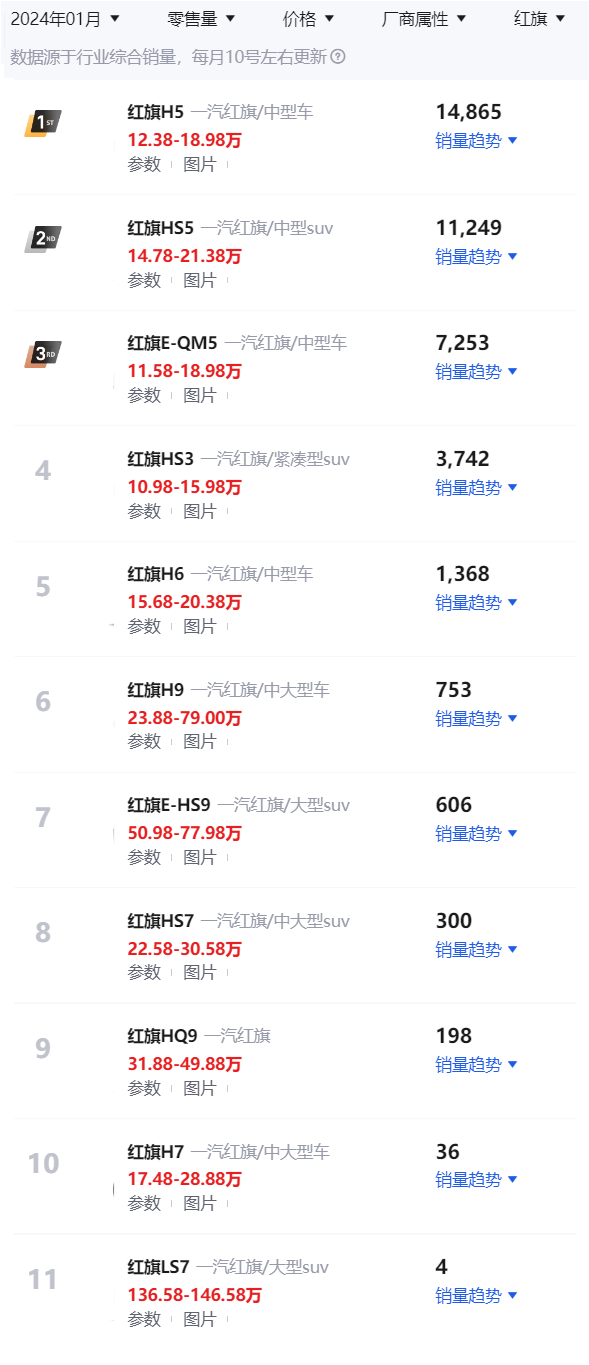 有没有发现红旗H9、HS7、HQ9的销量比较低?