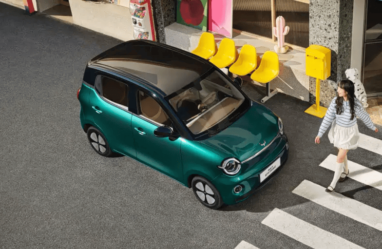 先说最直观的变化。新车用上了“甜趣方糖”设计语言,前脸那对圆形大灯像两只大眼睛,萌态十足。银色五菱车标从原来的位置移到了机盖前端,整个前脸一下子干净利落了不少。车身颜色这次也花了心思,绿悠悠、白绒绒、灰萌萌三款复古色系,据说用了八层涂色工艺,实车在不同光线下会有珠光流转的质感——这种漆面放在这个价位的小车上,确实不多见。