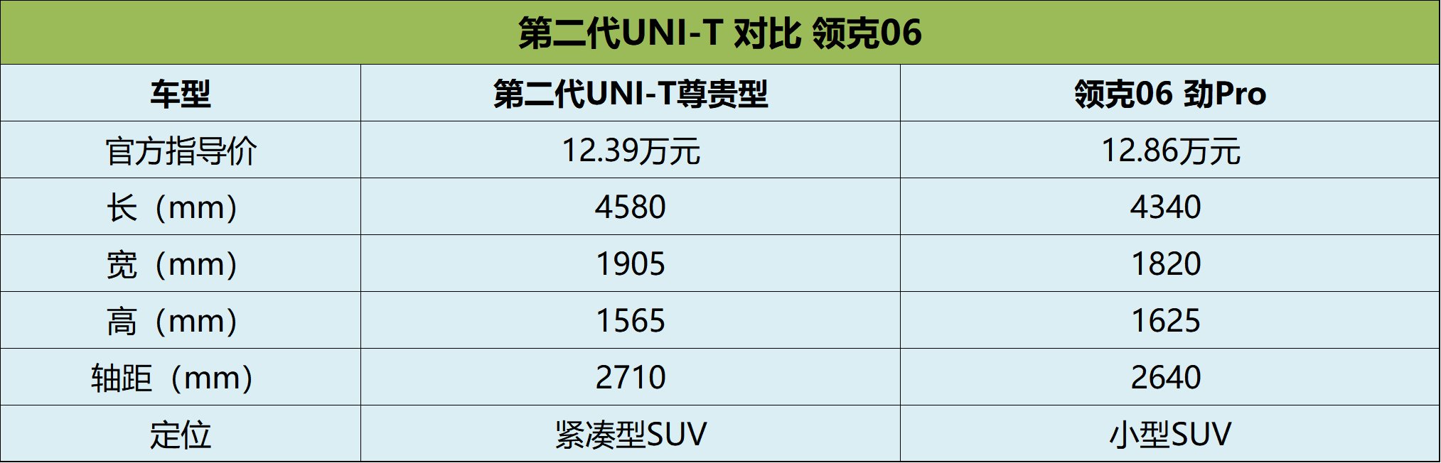 从定位上,第二代UNI-T定位为紧凑型SUV,而领克06仅为小型SUV,从产品属性上,第二代UNI-T领先领克06一个level,而真正的实用性,还要看更详细的数据,并非只是最单一的车型定位。