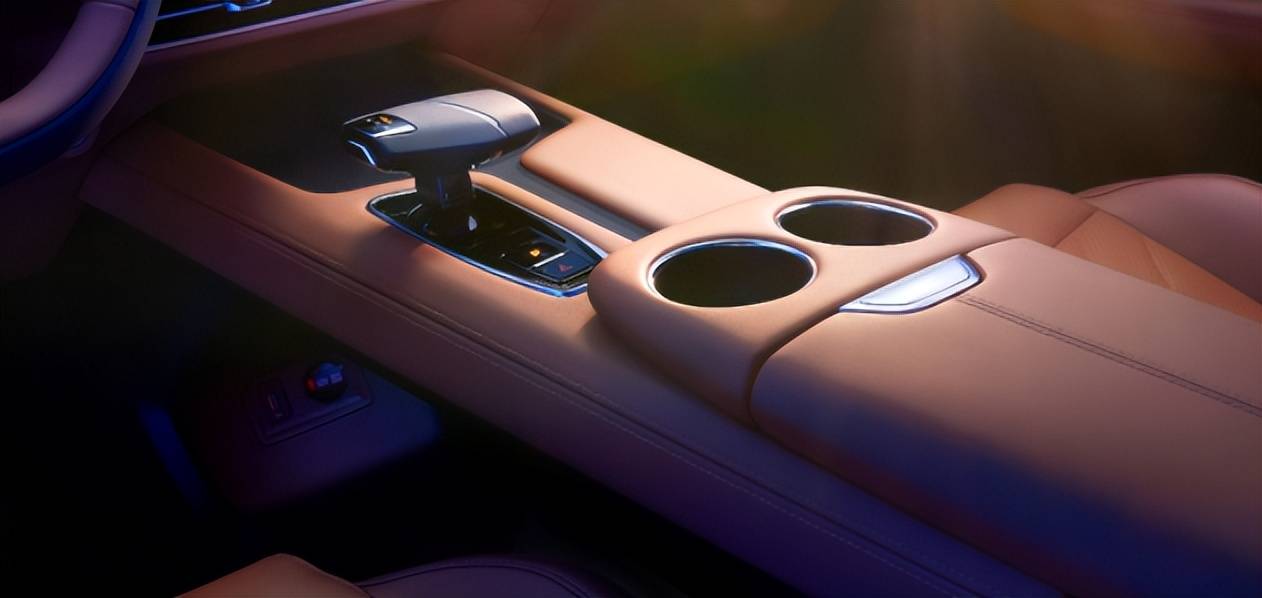 车内是温馨的双拼色设计,在中控台、门板等地方均采用软性皮质包裹,内饰质感进一步提升,座椅的舒适度和豪华感也都很到位。中央扶手位置安排了双手机无线充电、双杯架、还有开口很大的储物箱。