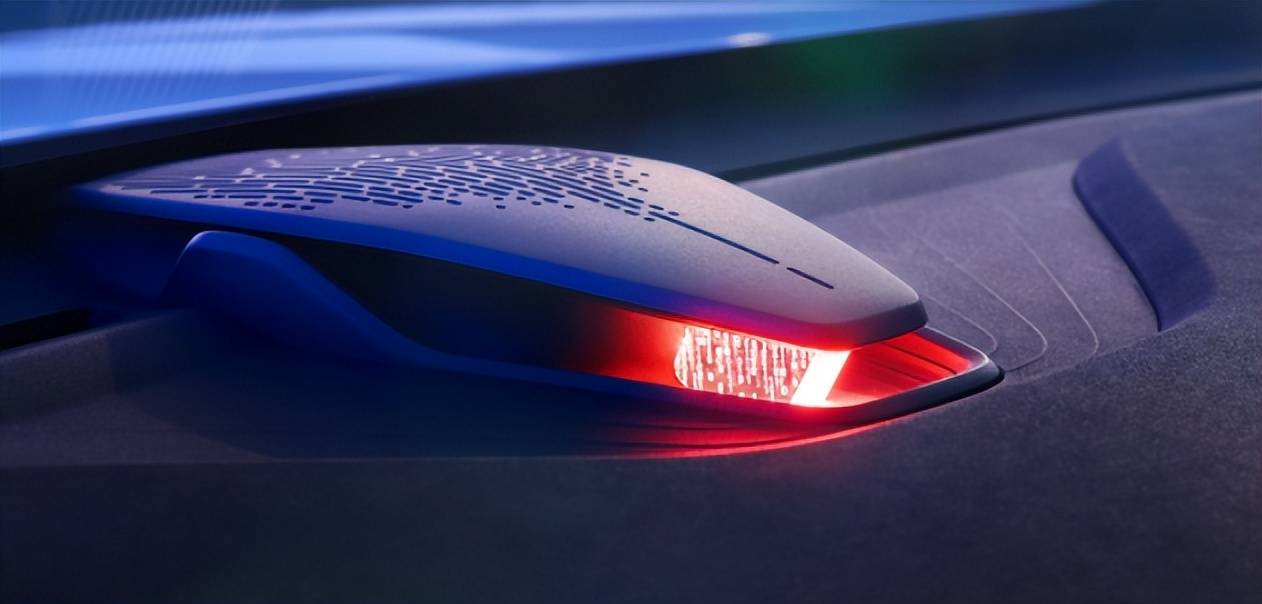 特别与众不同的是,长安UNI-Z在前挡风和中控台之间的位置,设计了一个战舰造型的、亮着类似核反应堆灯光的部件,它是这台车的车内氛围灯,会根据车辆行驶状态进行律动,与阿维塔的情感旋涡设雷同,为车辆和驾乘者之间产生情感链接。