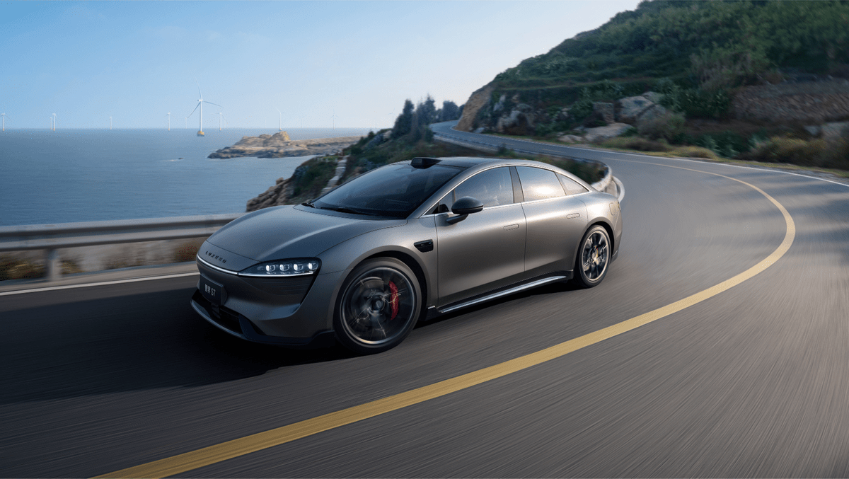 侧面来看,智界S7的身型修长,造型圆润,隐藏式门把手极具科技感,并且为了突出智界S7的运动气质,新车还配备了21英寸锻造轮毂、Brembo高性能刹车卡钳、业界首款FNC打孔刹车盘,以及运动化外观套件。