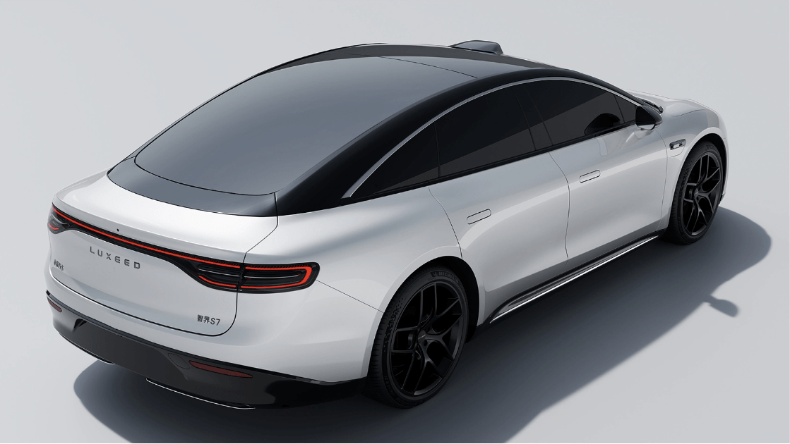 智界S7的车尾设计同样也十分简洁,拥有与车头相呼应的贯穿式尾灯。如果选择的是带有运动套件的版本,则还会配备碳纤维风格后扰流板以及运动式的后包围。