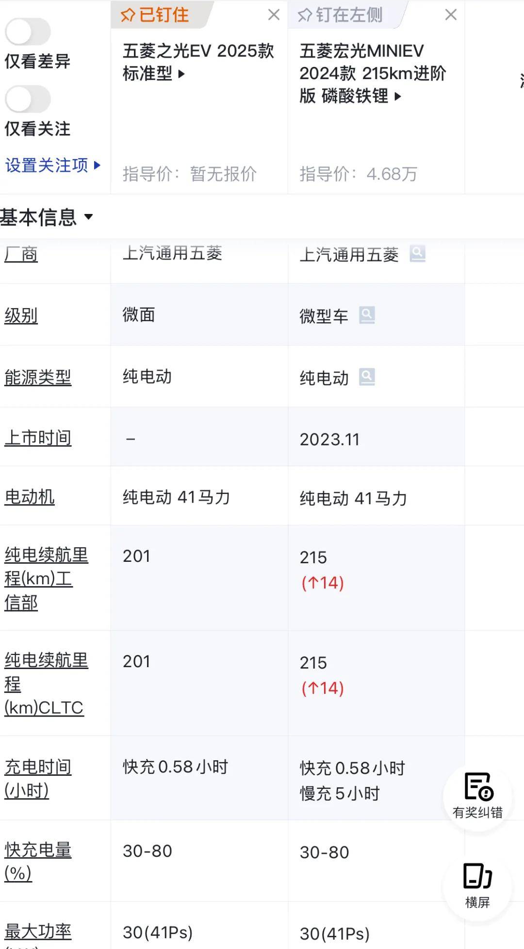 二者都是后置单电机,总功率都是30千瓦,因为宏光MINI EV是微型车,质量比微面的之光EV要小,所以前者的扭矩要大一些。同样道理,宏光MINI EV的续航是215公里,也稍微多一点。此外二者的电池电机并无区别。