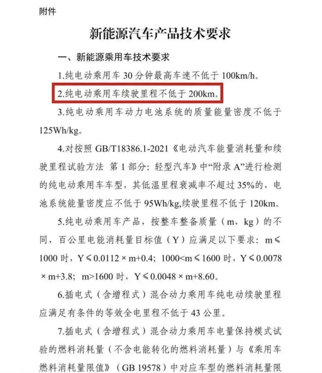 去年6月1日,国家开始实施《关于调整减免车辆购置税新能源汽车产品技术要求的公告》,对入围免征购置税的电动汽车在续航和电池等方面提出了更高的要求。其中对纯电汽车免征购置税条件做出限制:纯电续航里程需大于或等于200公里;动力电池能量密度要大于或等于125wh/kg以及能量密度指标等。