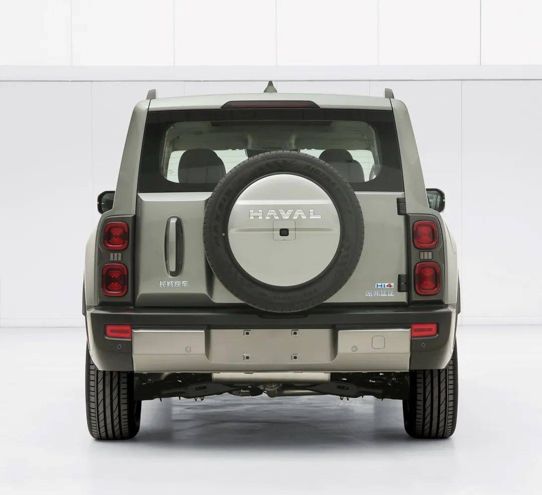车身侧面,新车造型也较为方正,轮拱向外突出,配合带有越野风格的黑色侧裙边以及黑色五辐轮圈,营造出了不错的力量感,车顶还加入了行李架,符合其硬派的风格。车尾部分,新车尾灯为分体式方形造型设计,有点类似于路虎卫士的既视感。尾部带有外挂式备胎,后备厢采用侧开设计,并配有可支持选装的拖车钩,准拖挂车总质量不带制动为750kg,带制动为1500kg。