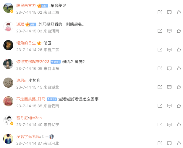 从网友的评论反馈来看,对于新车的设计还是比较认可的,同时也有不少网友恳求,不要再乱起名字了。