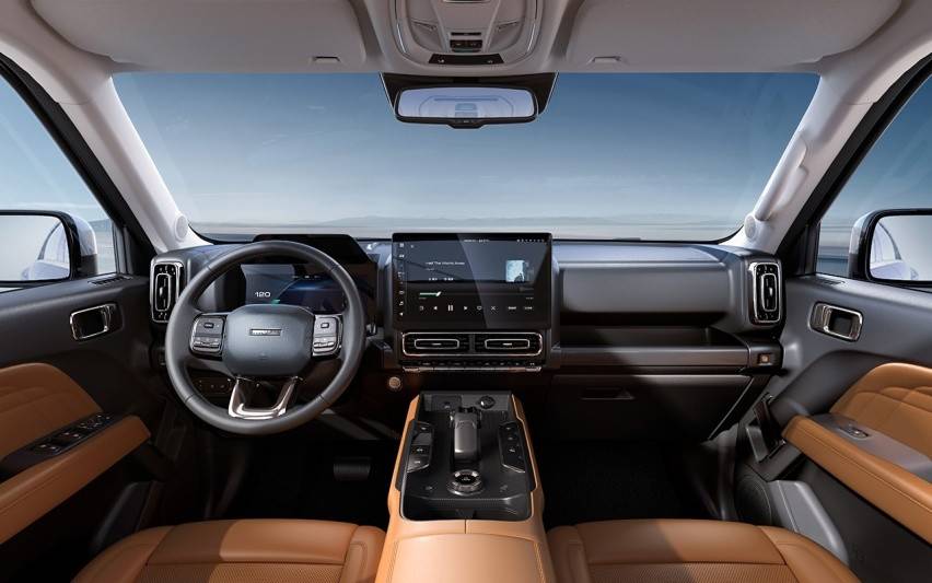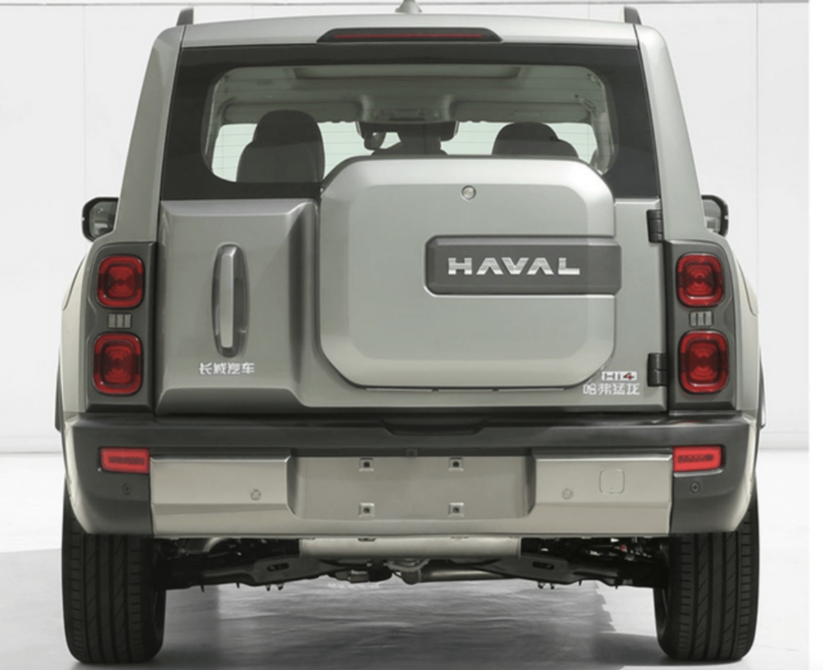 新车尾部也展现了其硬派越野SUV的身份,两侧的分体式方形尾灯与路虎卫士有些相似,备胎采用悬挂式,后备厢则采用侧开设计,并配有可支持选装的拖车钩,排气则运用隐藏式布局。值得一提的是,新车尾门除了备胎还可以选择小书包。