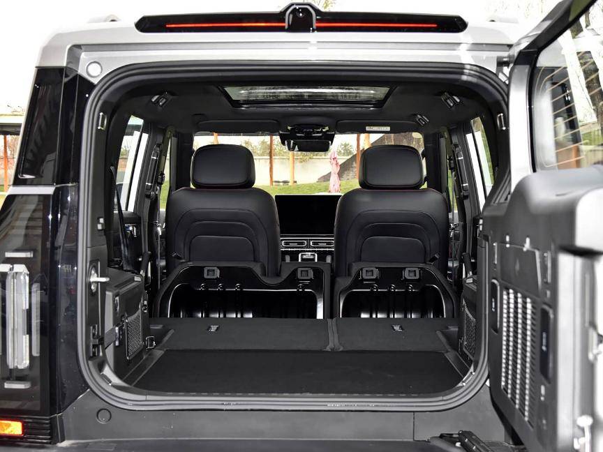 从日常使用来说,两者都够用,175cm的身高在坐后排翘个二郎腿也没问题,中间的地台也几乎纯平。但如果你是个露营爱好者,或者家里有娃经常需要拉婴儿车、帐篷,旅行者的后备箱会更从容,并且是侧开门,更有硬派的感觉。