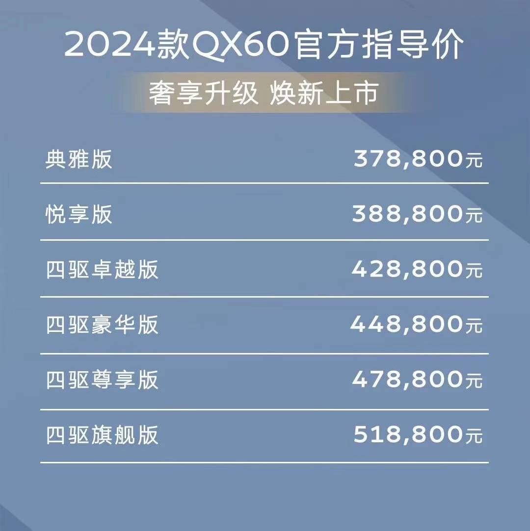 全系降价/最高超10万元,2024款英菲尼迪QX60上市,售37.88万元起